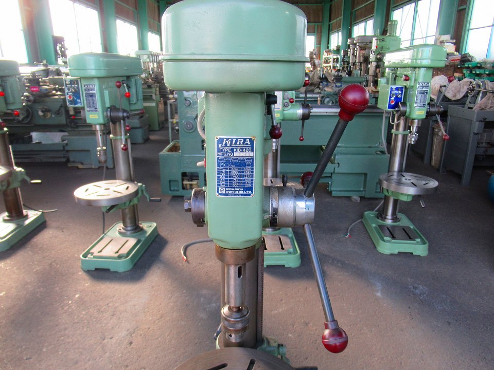 | 主仕様 | 切削能力ドリルφ23, 主軸テーパーMT#2, 主軸回転数300~3000rpm(5段), 主軸ストローク130, 主軸~テーブル距離425(丸)470(角), 振り420, モーター0.75kw 4P, |