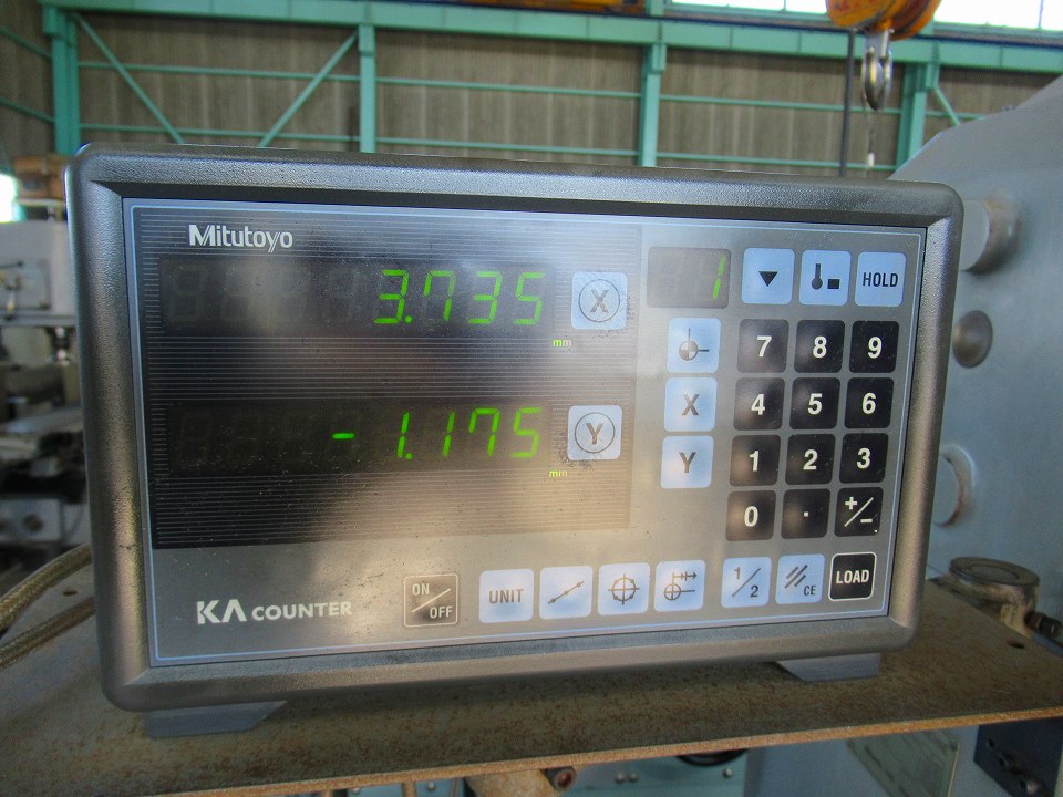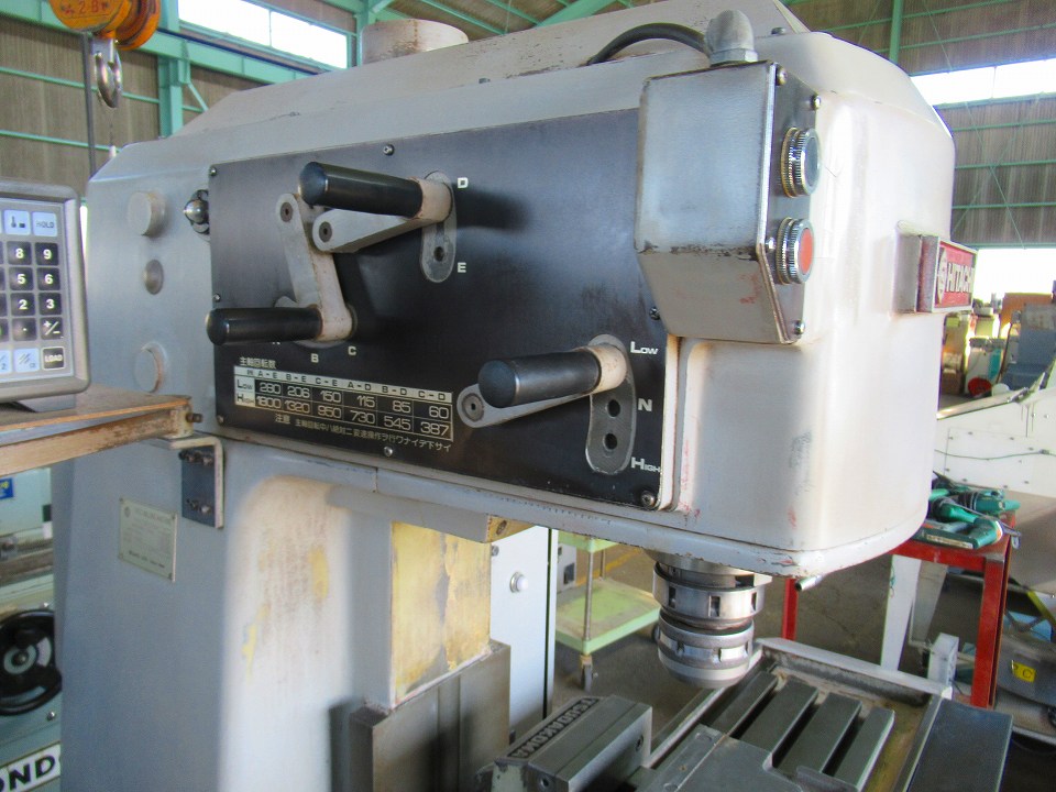 | 主仕様 | 主軸テーパーNo.50, 主軸回転数60~1800rpm(12段), テーブル1350x310, テーブル移動量710x300x400, 前後左右自動・早送り, モーター3.7kw, |