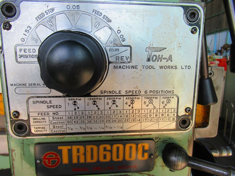 | 主仕様 | 切削能力ドリルφ40, タップM22, 主軸MT#4, 主軸ストローク200, 回転数88~1500rpm(6段), アーム上下560, 主軸左右移動量467, スイング622, |