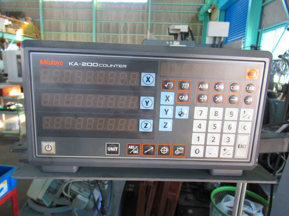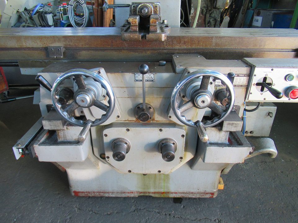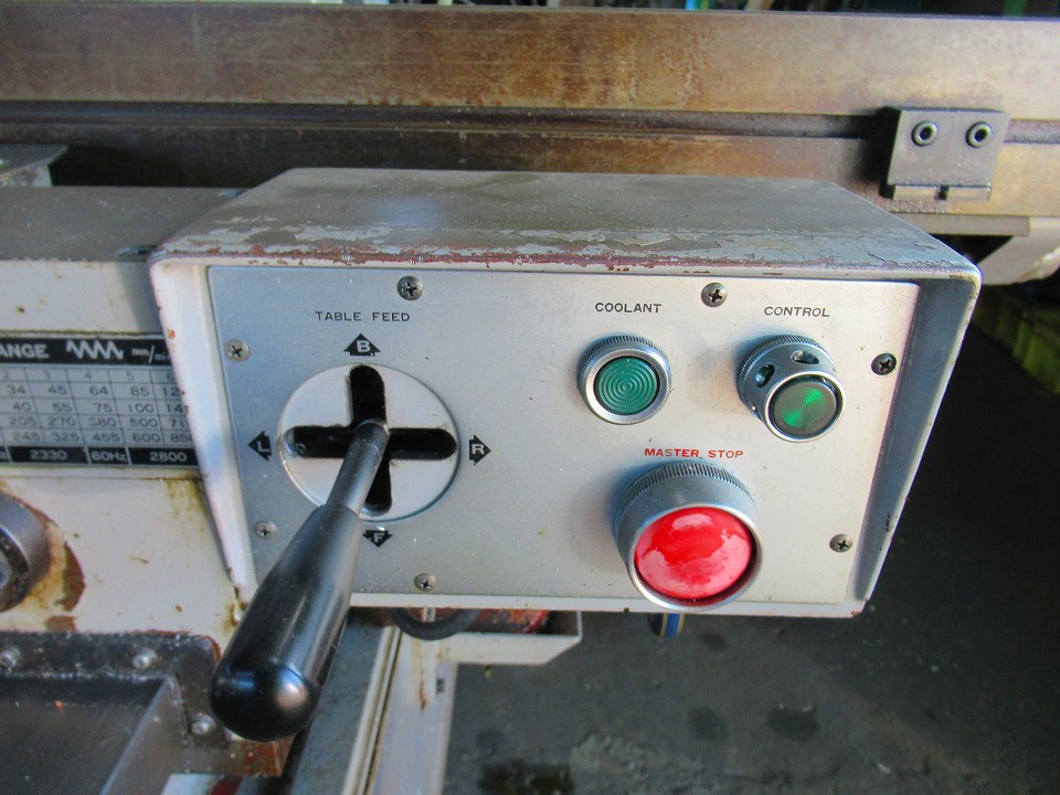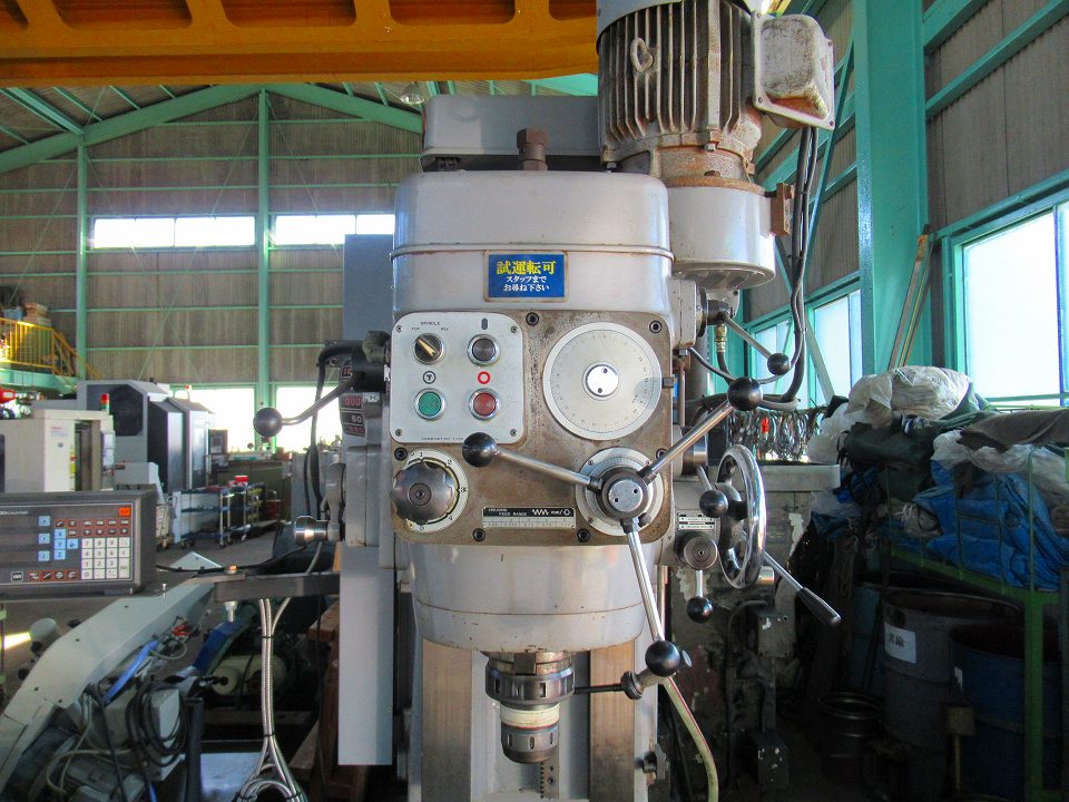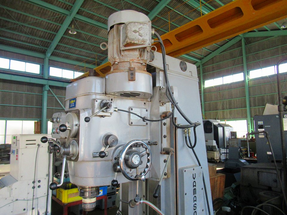 | 主仕様 | 主軸テーパーNo.50, 主軸回転数45~1600rpm(16段), テーブル1500x350, テーブル移動量850x350, クイルヘッド上下540, 主軸~テーブル距離660, 前後左右自動・早送り, モーター3.7kw 4P |