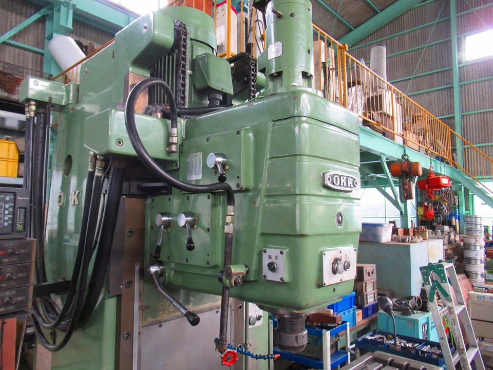 | 主仕様 | 主軸テーパーNo.50, 主軸回転数22~1400rpm(18段), テーブル2000x450, テーブル移動量1020x520, ヘッド上下560, 主軸~テーブル距離570, 前後左右上下自動・早送り, モーター7.5kw 4P |