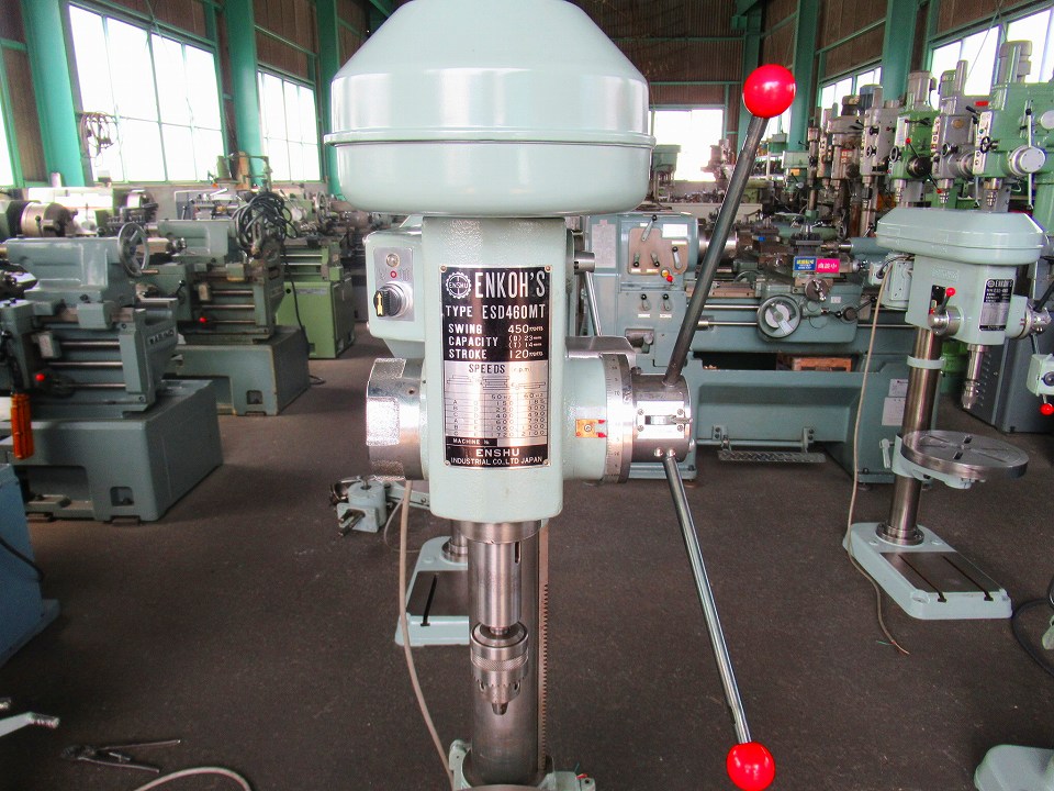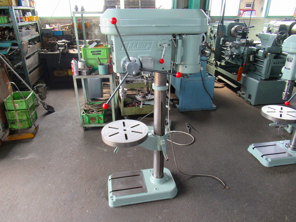 | 主仕様 | 切削能力ドリルφ23, タップM14, 主軸テーパーMT#2, 主軸回転数185~2100rpm(6段), 主軸ストローク120, 主軸~テーブル距離425, 振り450, モーター0.75kw 6P, |