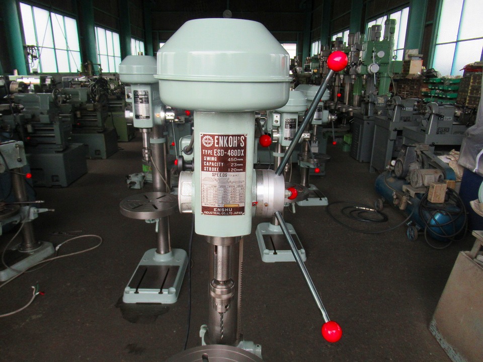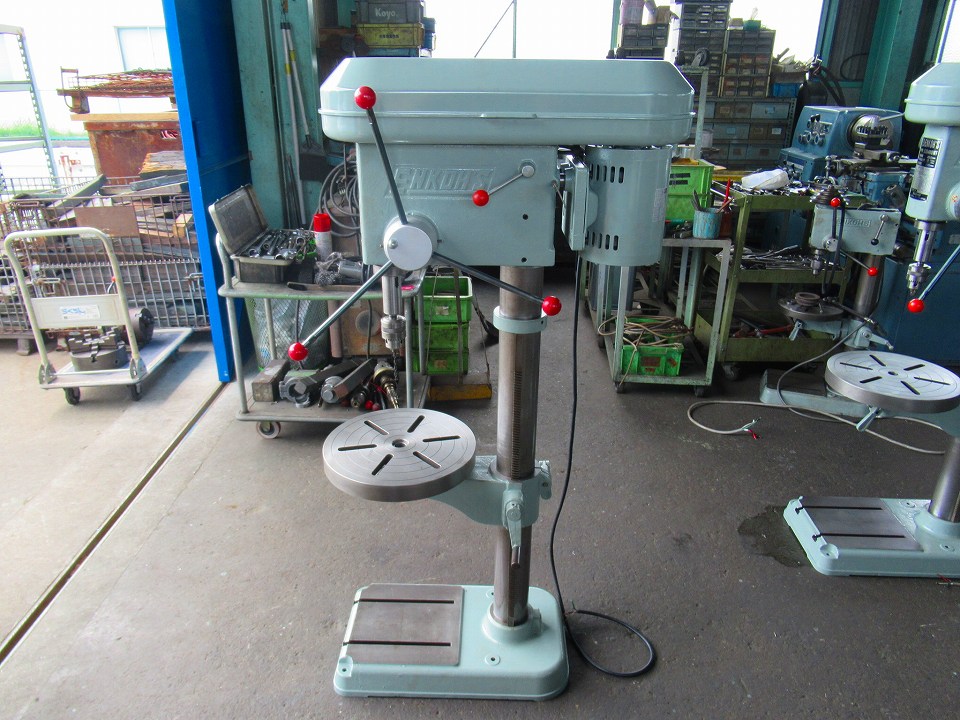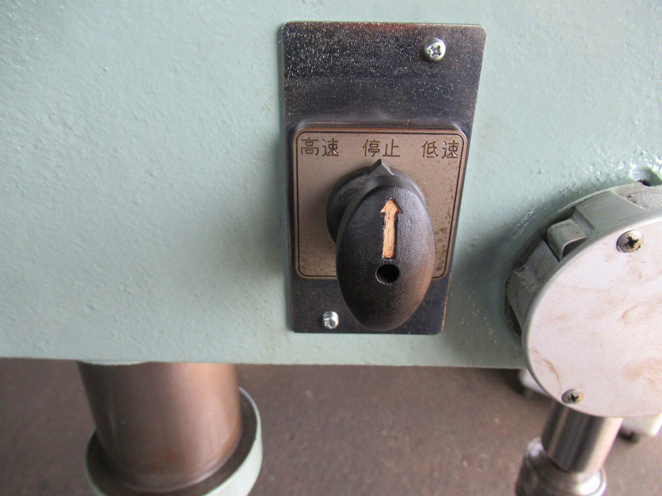 | 主仕様 | コラム100㎜UP, 切削能力ドリルφ23, 主軸テーパーMT#2, 主軸回転数65~2100rpm(12段), 主軸ストローク120, 主軸~テーブル距離425, 振り450, モーター0.4kw 4P/8P, |
